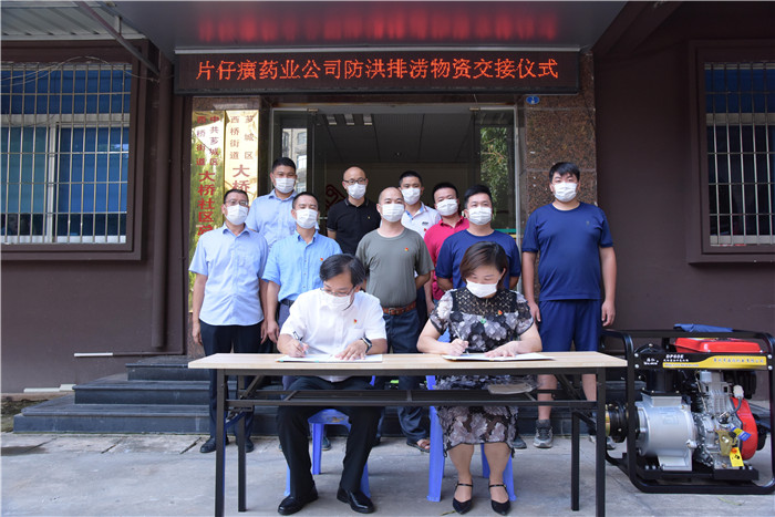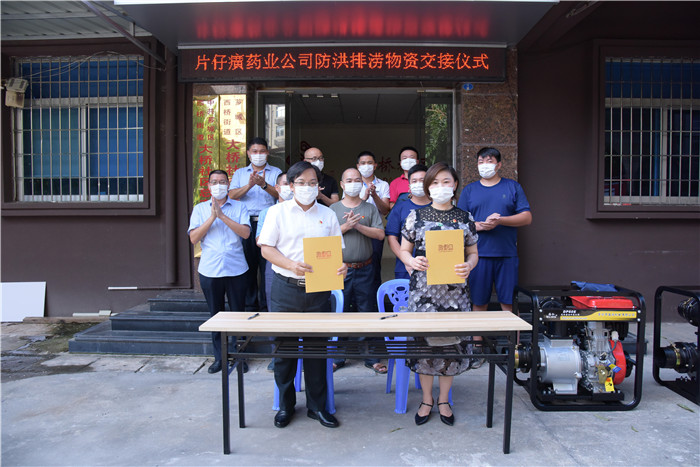 当前我市正处在防汛防台风主汛期,公司处在九龙江畔,周边有些居民社区、旧房和道路地势处在低畦地带,每逢大暴雨或台风时,就出现严重积水,给居民生活生产带来不便,防汛形势较为严峻,为充分彰显国企担当和对社会责任的履行,漳州片仔癀药业股份有限公司通过漳州市高新区应急管理局向九湖镇大桥社区居委会赞助防汛排涝抽水泵2台,及时提供防汛排涝防控应急设备的支持,时刻与地方政府建立防汛抗洪联防联动联控机制,共同构筑防灾减灾救灾的人民防线,全力保障人民群众生命财产安全。