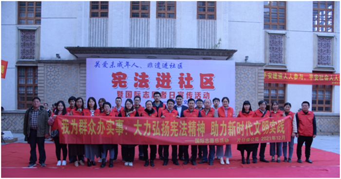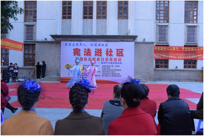 12月2日,片仔癀药业公司联合西桥街道西桥社区,在芗城区侨联大院内开展大力弘扬宪法精神、助力新时代文明实践——2021年国际志愿日宣传活动。