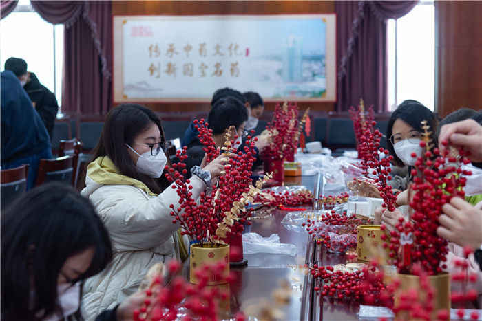 此次还准备了手工DIY活动,老师在制作前为大家介绍花抱抱桶和新年挂环的制作特点,并对制作过程中容易碰到的难点和注意事项进行了深入细致的讲解,职工们在老师的指导下,一件件精美的成品在灵巧的手中完成。手工制作不仅锻炼了大家的手眼协调能力,同时也让职工们充分感受传统文化的魅力,从而营造出欢乐喜庆的节日氛围。
