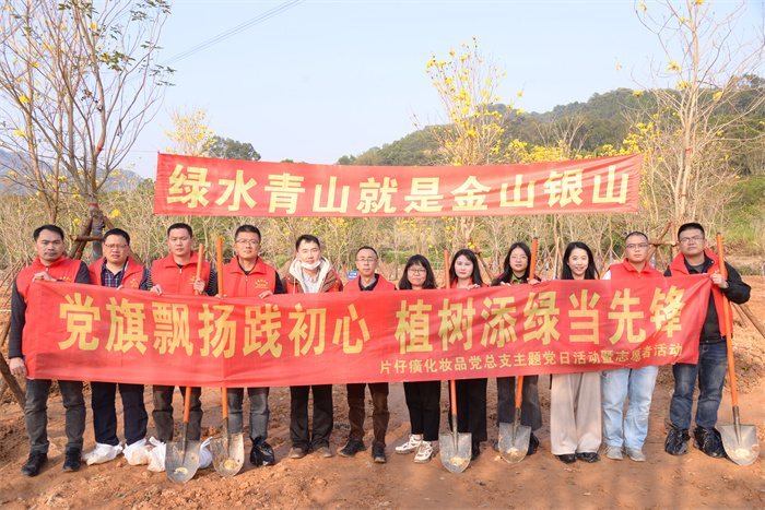 春晖在望,万物竞发,植树添绿正当时。为深入贯彻落实习近平生态文明思想,深刻践行“绿水青山就是金山银山”的理念,3月17日下午,漳州片仔癀药业股份有限公司及权属企业片仔癀化妆品公司到漳州市云洞岩开展义务植树活动,号召广大党员职工参与生态文明建设,共守绿水青山。