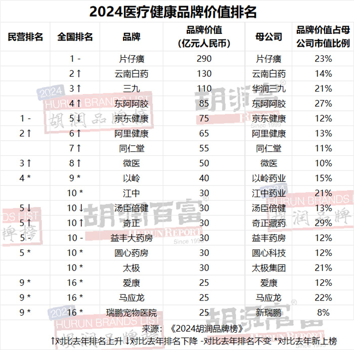 2025416日,胡润研究院发布《2024胡润品牌榜》,片仔癀连续五年领跑,稳居“胡润品牌榜医疗健康品牌价值榜”榜首。