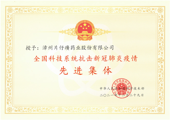 近日,国家科技部发布了《关于表彰全国科技系统抗击新冠肺炎疫情先进集体和先进个人的决定》(国科发奖〔202218号),漳州片仔癀药业股份有限公司荣获“全国科技系统抗击新冠肺炎疫情先进集体”表彰。