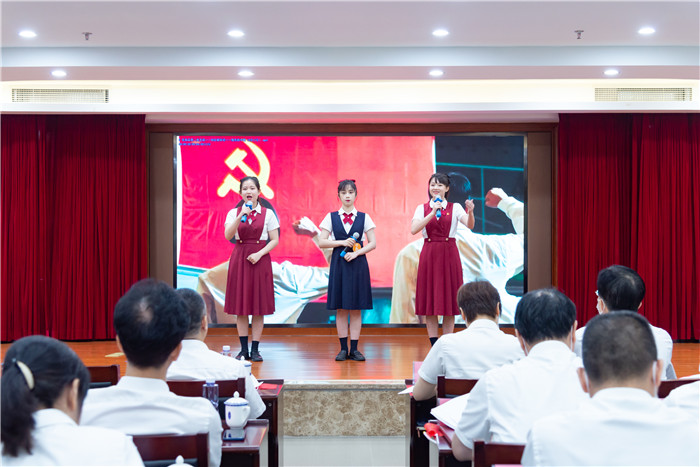 比赛现场,来自基层党支部的12个参赛作品以独诵、对诵、合诵等多样表现形式,在舞台上尽展风采。伴随着精美的视频配乐,参赛者们或慷慨激昂,或婉转低回;或深情回顾建党百年来的伟大成就,抒发浓厚的家国情怀;或结合企业的发展历程,赞颂“务实、包容、创新、发展”的片仔癀精神。他们用文字抒发理想信念,用声音传递青春力量,展现了朗诵的艺术感染力和舞台表现力,表达了片仔癀党员、干部、职工们对党矢志不渝的热爱和对二十大胜利召开的祝福。现场高潮迭起,气氛庄重而热烈,精彩的朗诵赢得了评委和现场观众的阵阵掌声。