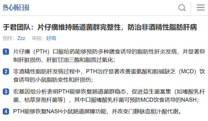 片仔癀维持肠道菌群完整性,防治非酒精性脂肪肝炎