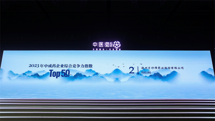 在会议颁奖典礼上,漳州片仔癀药业股份有限公司荣膺“2023年中成药企业综合竞争力Top50(排名第2)、凤县麝香生产基地荣膺“2023年中药材品牌示范基地”。