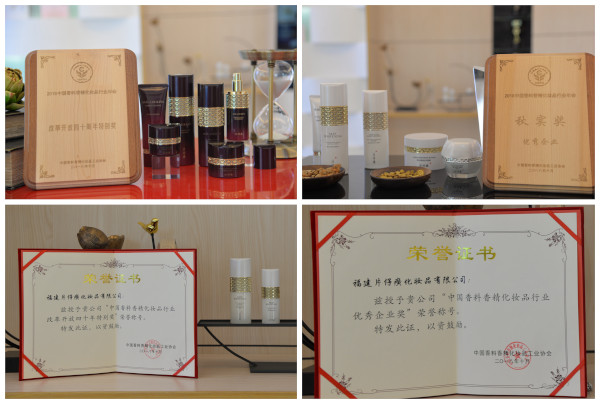 2018年10月9日-12日,由中国香料香精化妆品工业协会举办的、以“挑战 创新 品牌建设”为主题的“2018中国香料香精化妆品行业年会暨会员代表大会”在湖北省宜昌市成功举行。会上还对改革开放40年以来的行业优秀企业进行了表彰,片仔癀化妆品凭借其30多年来的优异质量口碑和企业的务实稳步发展,实力荣获“中国香料香精化妆品行业改革开放四十周年特别奖”和“中国香料香精化妆品行业优秀企业奖”两项荣誉称号。