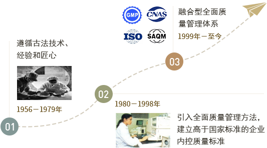 明代御医将片仔癀从宫廷带入民间,公私合营片仔癀进入新的历史篇章,片仔癀人传承古法炮制的技术和良药济世的精神,引进科学的质量管理技术,产品质量保持着优质和稳定,初步实现工业化生产。