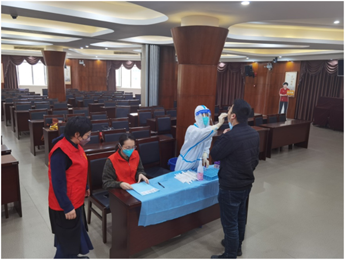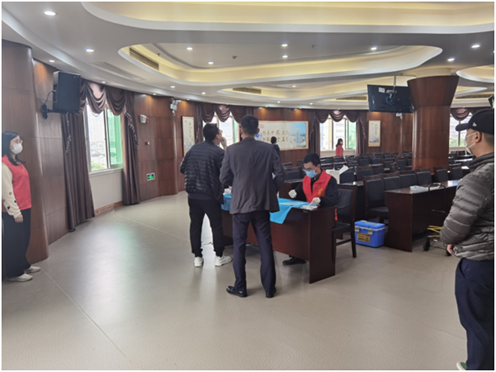在核酸检测现场,纪检监察人员协助医院检测人员登记参检人员信息,对参检员工进行引导分流,查看健康码,及时提醒参检人员戴好口罩、按照1米间隔排队,以实际行动践行初心使命,切实保障核酸检测采样有序高效进行,为打赢疫情防控阻击战贡献一份力量。