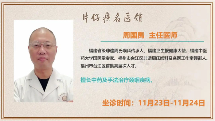 片仔癀名医馆丨11月18日—11月24日,全国31位名中医陆续到馆
