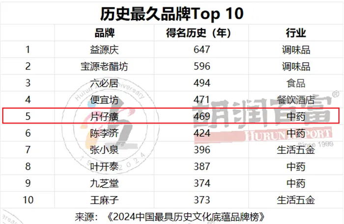 片仔癀品牌入选历史最久品牌top10(第5位)