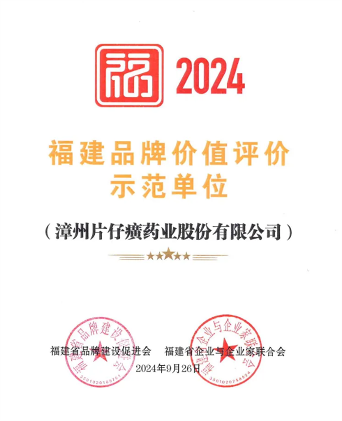 片仔癀药业被授予“福建品牌价值评价示范单位”
