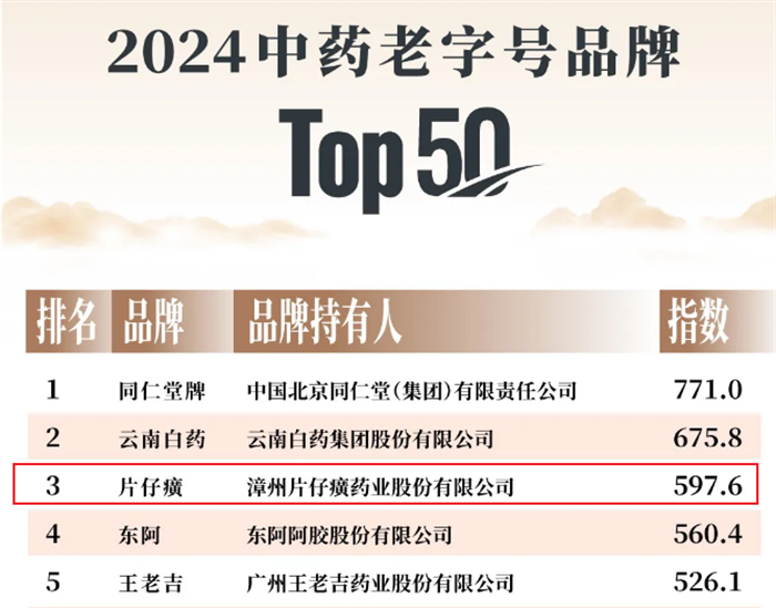 片仔癀药业入选“2024中药老字号品牌TOP50”