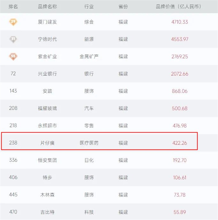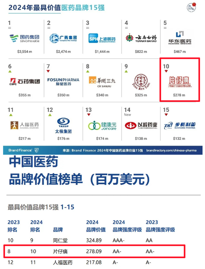 片仔癀品牌位列“2024年中国最具价值医药品牌榜单”第10名