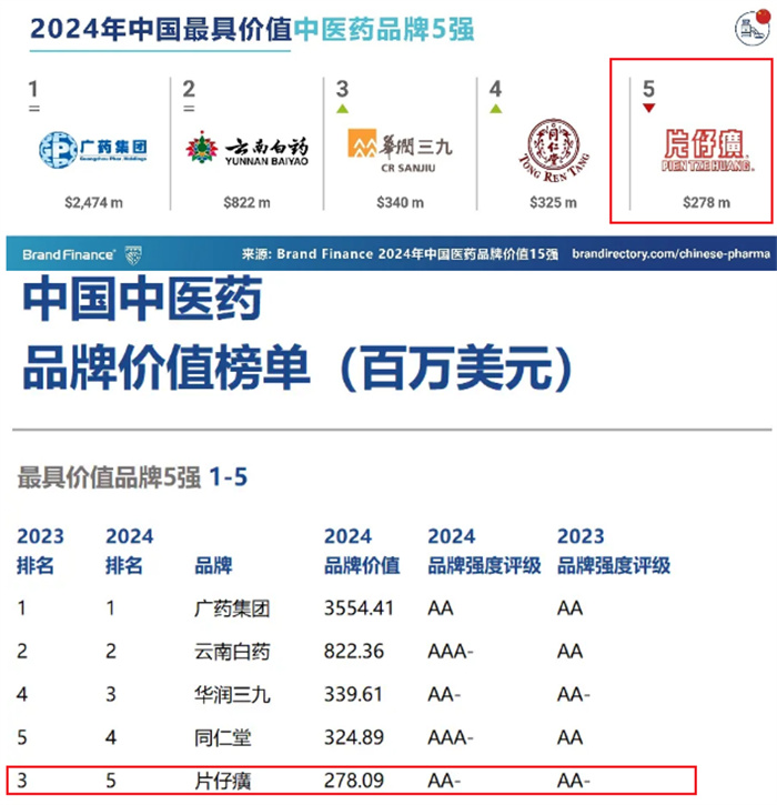 片仔癀品牌位列“2024年中国最具价值中医药品牌榜单”第5名