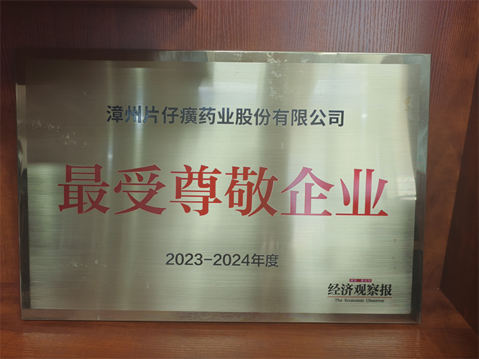 片仔癀公司被评为“2023-2024年度最受尊敬企业”