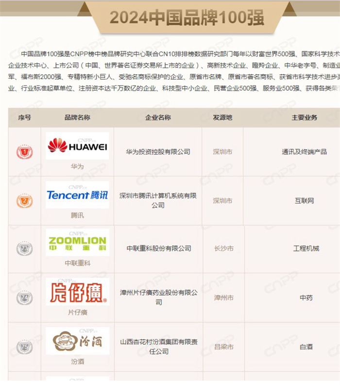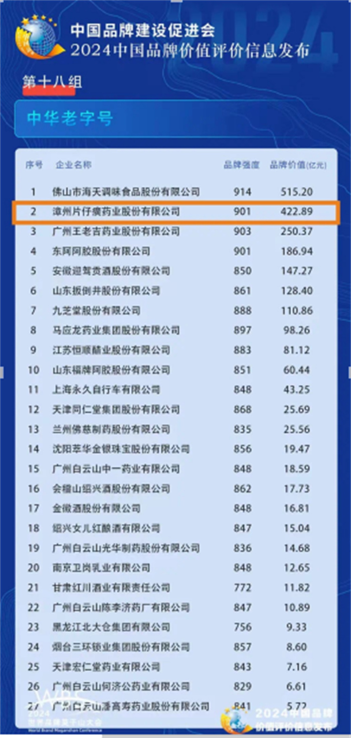 片仔癀品牌荣膺“2024年中国品牌100强”