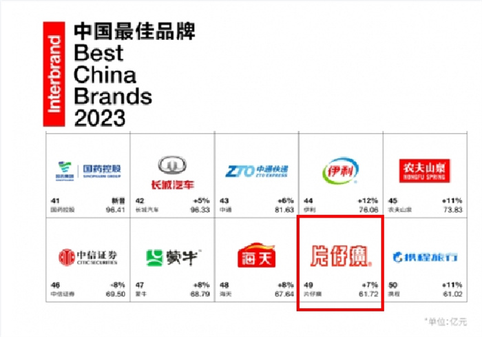 片仔癀以品牌价值61.72亿元,位列《2023中国最佳品牌排行榜》第49名