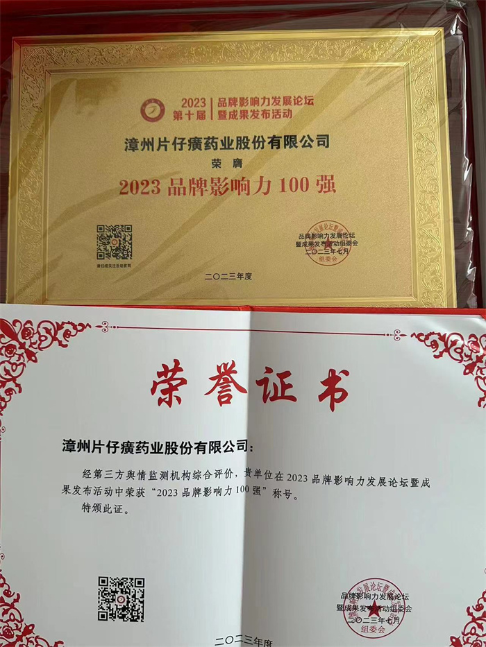 片仔癀品牌荣膺“2023品牌影响力100强”
