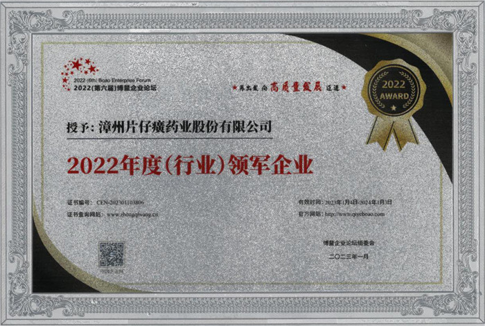 片仔癀药业荣获“2022年度(行业)领军企业”
