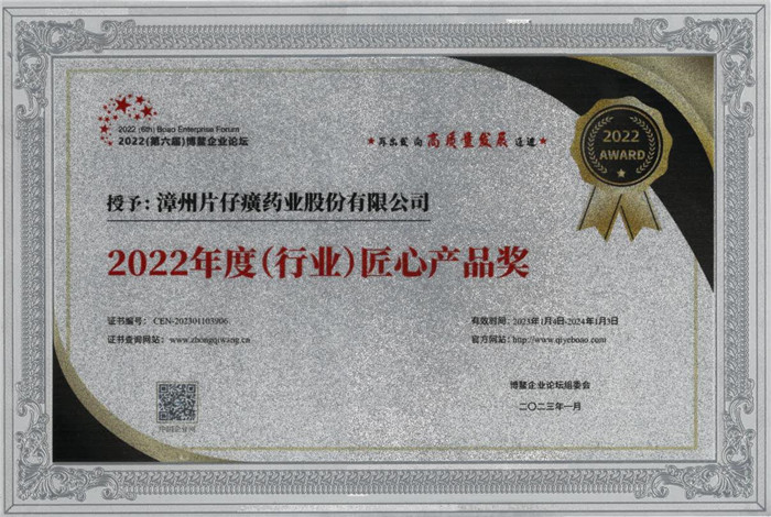 片仔癀药业荣获“2022年度(行业)·匠心产品奖”