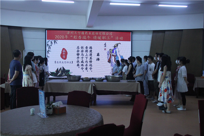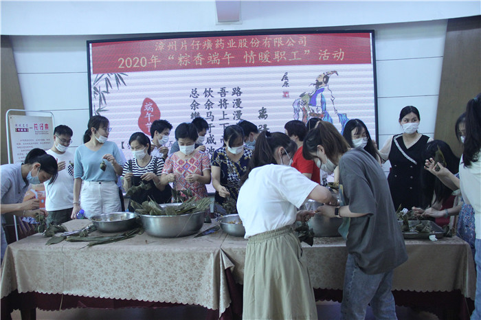 为大力弘扬爱国主义精神,传承爱国诗人屈原强烈的爱国主义情怀, 623日下午,在一年一度的中国传统节日端午节到来之际,漳州片仔癀药业股份有限公司工会在公司二楼食堂组织开展“我们的节日”系列活动——“粽香端午、情暖职工”主题活动。