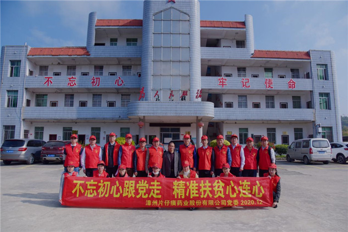 为助力决胜脱贫攻坚战,将精准扶贫进行到底,2020年12月3日,漳州片仔癀药业股份有限公司开展“不忘初心跟党走,精准扶贫心连心”扶贫慰问活动。活动由公司领导洪东明、陈纪鹏、杨海鹏带队,各基层党支部党员代表共计25人参加。