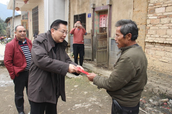 2018211日,片仔癀药业公司调研组在纪委书记林镇国同志带领下,专程赴漳州平和县长乐乡乐北村调研扶贫帮扶工作。调研组实地调研了片仔癀药业公司挂钩帮扶的长乐乡乐北村,与村“两委”班子进行了座谈交流,并听取了由“两委”推荐的困难户村民在生产生活中遇到的问题与需求,会后走访慰问了乐北村48户生活困难户,每户发放600元慰问金。
