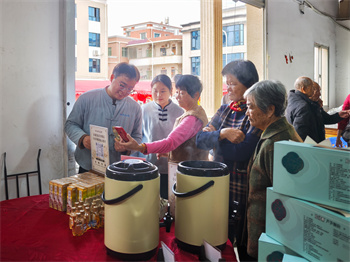 活动聚焦村民实际健康需求,特邀华碧春、林久茂、魏丽娟等名医领衔,与公司专家医师共同组成多学科团队,现场提供健康咨询、基础检测及疾病预防指导。现场同步设立健康体验区,提供养生茶饮与健康饼干试吃,让村民在了解健康知识的同时,亲身感受企业优质产品与服务。